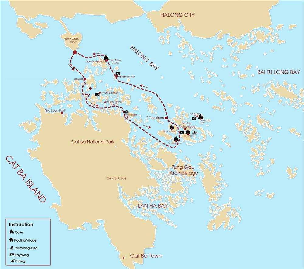승솟동굴, 티톱 섬에서 하롱베이의 신비로운 매력을 느껴보고 항루언에서 카약킹 또는 뱀부 보트를 체험하며 잊지 못할 시간을 보내보세요.
