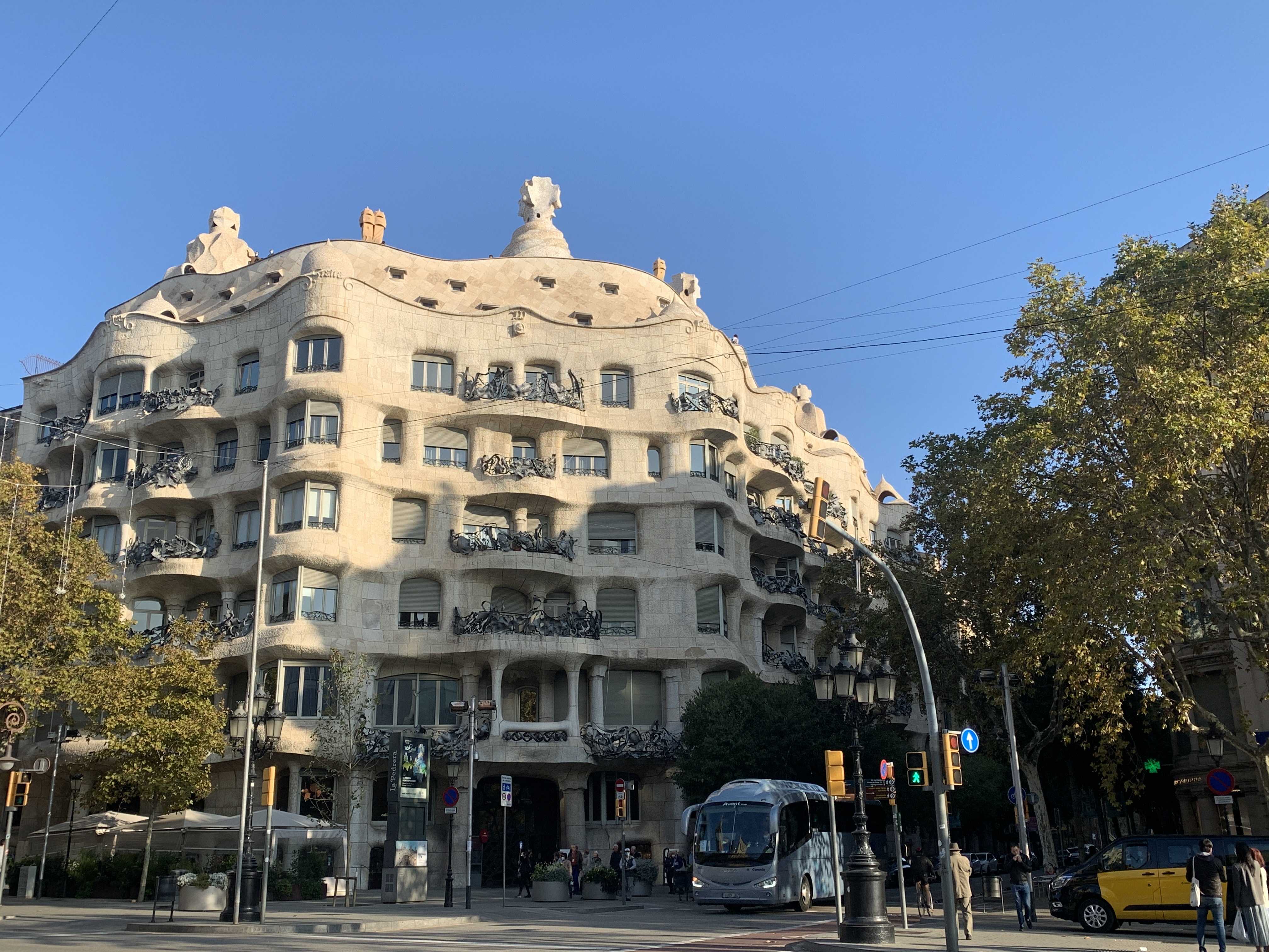 이 거주용 아파트는 가우디가 만든 서민건축의 마지막 작품으로 1906년에서 1910년 사이에 세워진 이 건물은 섬유제조업자인 뻬레 밀라의 요청에 의해 만들어진 것이다.